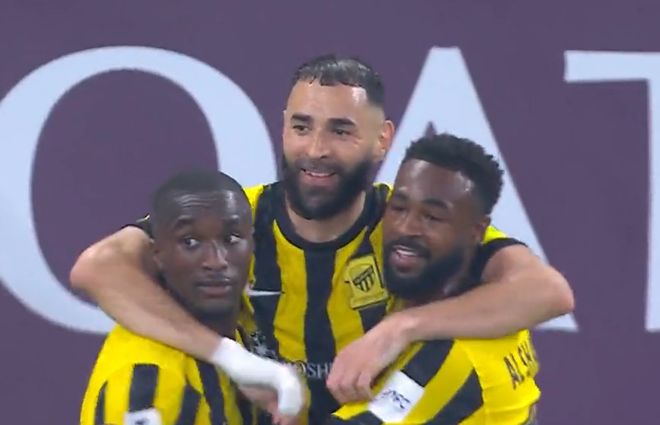 第40分钟,吉达联合中路压上,本泽马策应斜吊转移到右侧,纳萨夫后防解围失误,迪亚比插上突入禁区接球,倒三角似传似射往门前兜,门将内马托夫奋力将球扑出,本泽马后排拍马赶到抢到第2落点超近距离凌空垫射,BOOM的一声皮球又是被门柱挡出,吉达联合今天这运气也不怎么样。易边再战吉达联合加强进攻,第55分钟,吉达联合左路压上,本泽马禁区前沿和队友配合后还是无法打进去,本泽马将球传回来,吉达联合重新组织进攻,法币尼奥斜塞左侧,刚替补登场的费尔南德斯禁区边上接球晃开防守兜传门前,后点无人防守的本泽马小禁区内抢点凌空垫射,这次皮球应声入网,吉达联合1:0终于是打破僵局。
